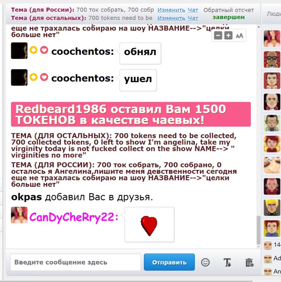 Ao clicar no botão, você aumentará a CanDyCheRry22 para a primeira posição na página principal por 60 segundos. Durante este tempo, a sala de bate-papo da modelo ficará muito mais visível e incrivelmente popular! Uma notificação sobre sua ação aparecerá no bate-papo, visível para a modelo e os outros usuários de bate-papo. CanDyCheRry22 com certeza apreciará esse gesto ficará incrivelmente agradecida a você!